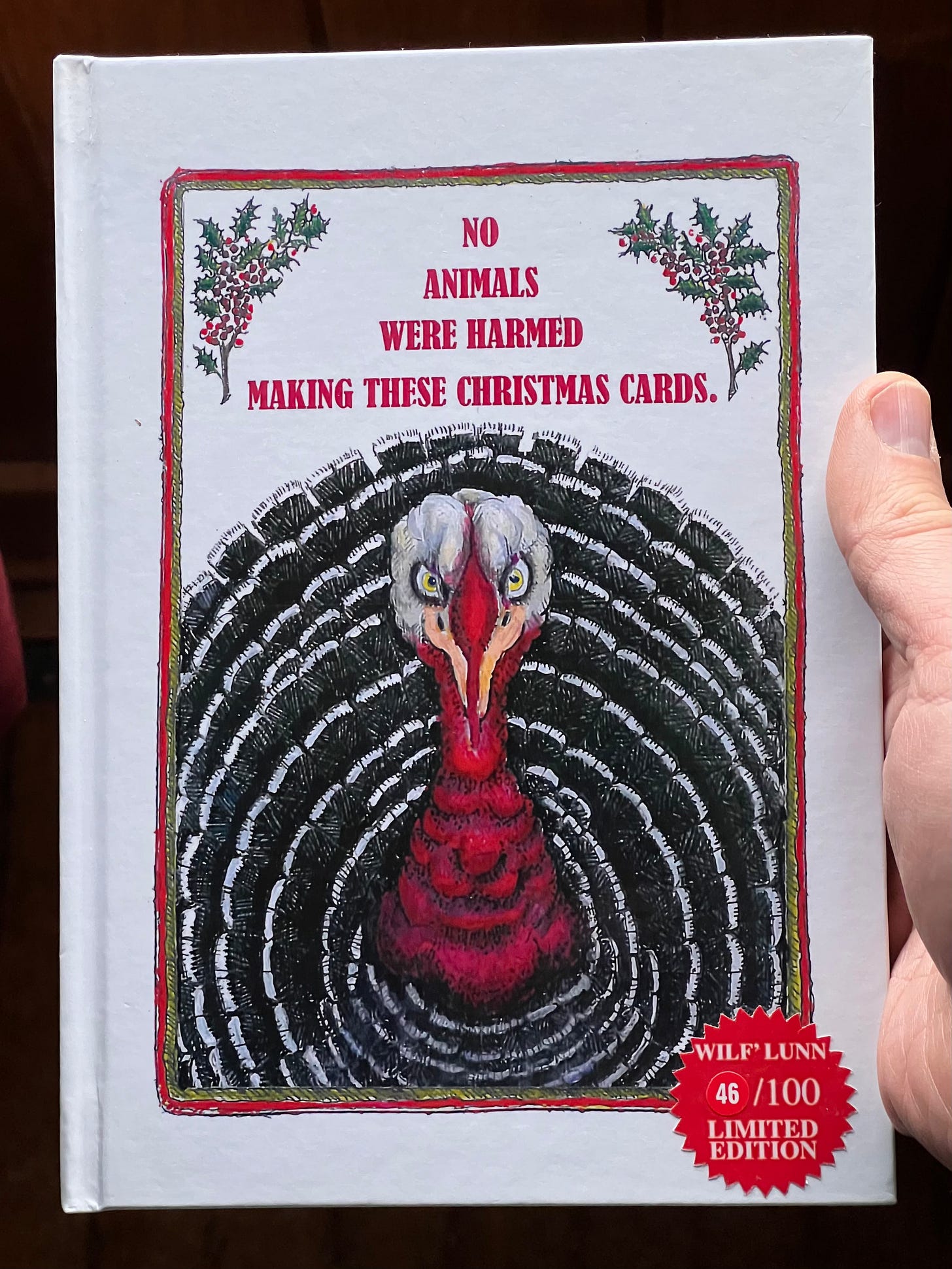 I also just came across a pile of his books while tidying the shed, all signed. This one contains a weird and wonderful collection of Christmas tree themed cards.