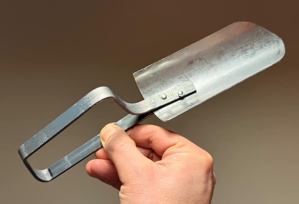 A metal trowel she made at school. It will either accompany me out detecting or in the garden.