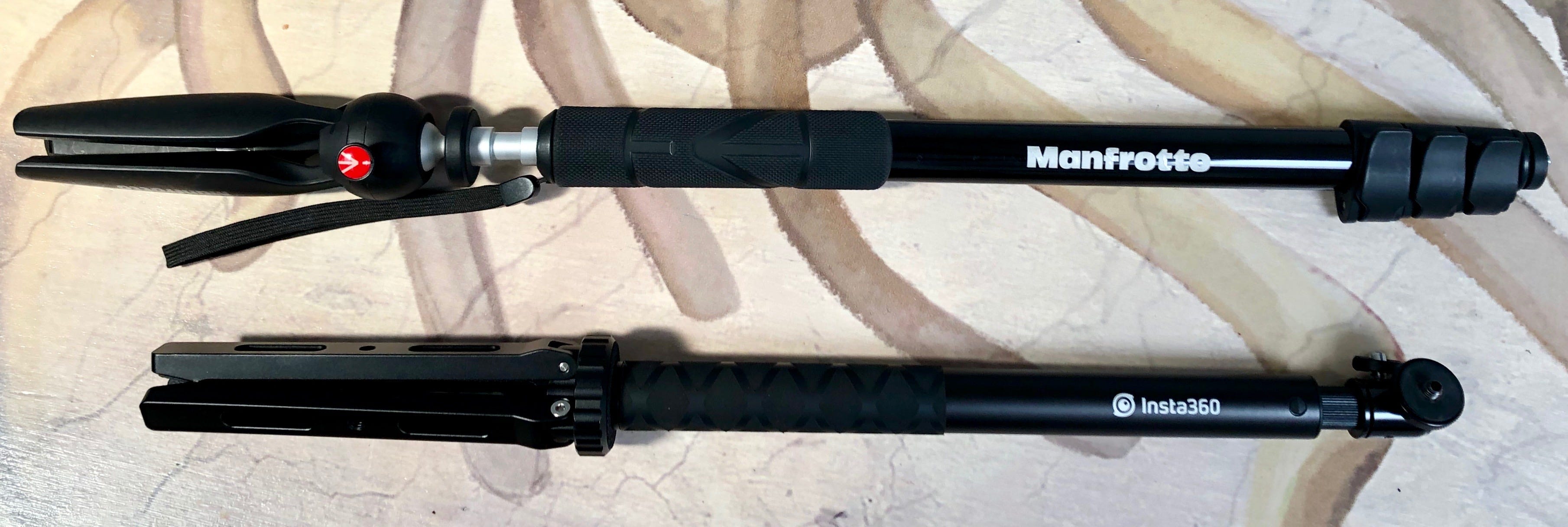 I’ve ditched the Manfrotto option (top) for the much more stable option below it (bottom). I’ve used a mini camera ball head on an Insta360 selfie stick on a FeiyuTech mini tripod. It packs small and is the most stable option of the two. It’s handy for the iPhone, Sony RX100iv compact or GoPro.