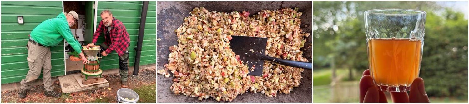 It’s a little bigger than ours with a larger scratter (pulper) on top. It made short work of a big crate of our apples and delivered me about 8 litres of juice from 10kg of apples. The left overs get shovelled into compost and 6 litres of juice is now slowly turning into cider. ;-)