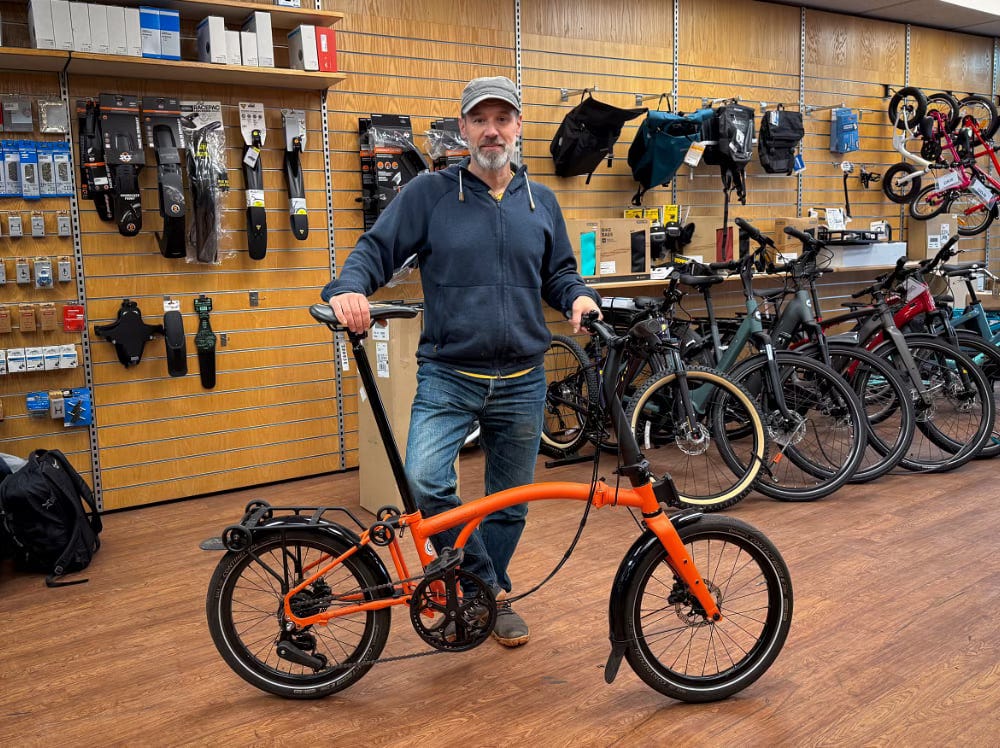 But the G-Line? I have to admit... it rides beautifully. The extra gears are very welcome, the responsiveness is classic Brompton and the fold feels instantly familiar. I was grinning across tarmac, cobblestones, hills and curbs. I rode it out and about and then back into the shop. (...Who were lovely, by the way.) I did notice the extra weight.