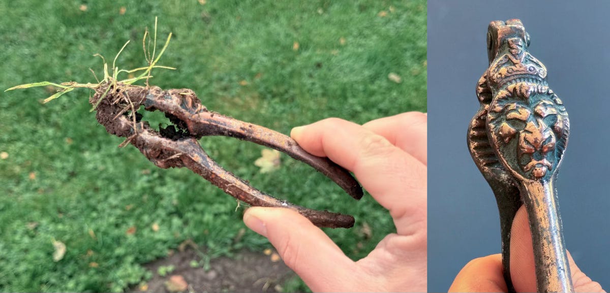 I buried one of my daughter’s birthday presents (some cash wrapped in foil) in the garden and after she successfully found it with the metal detector I had a quick sweep and found this amazing nutcracker.