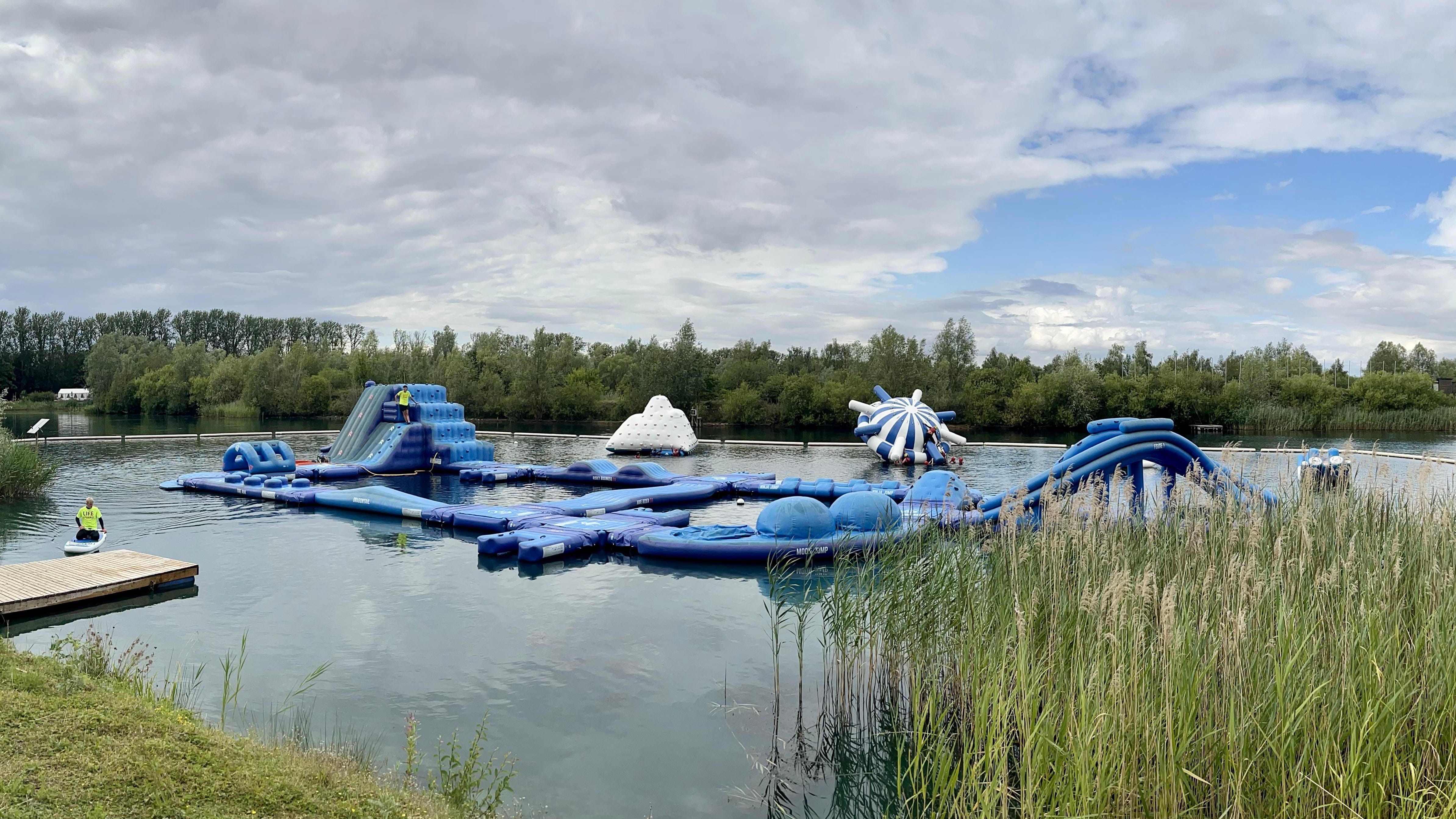 The most fun outside of cycling this week was had playing on inflatables. I can’t remember the family ever laughing as hard as they did while scrambling up and jumping off these inflatables into a freshwater lake.