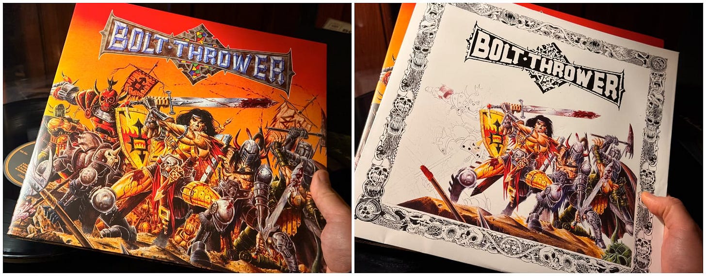 For years I’ve wanted to pick up a first pressing of Bolt Thrower’s Warmaster. I was never really a death metal fan, but when I was a teenager visiting a friend in Nottingham I walked in on the artist Pete Knifton painting the album cover.